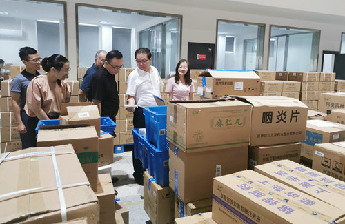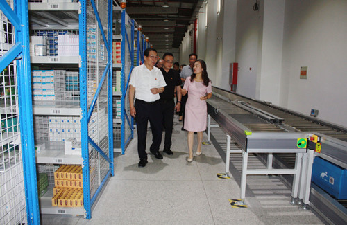 一行人員在公司黨委書記、董事長繆凌云的陪同下,參觀了物流倉庫和黨建文化陣地,了解健橋經(jīng)營發(fā)展與黨建工作情況。
